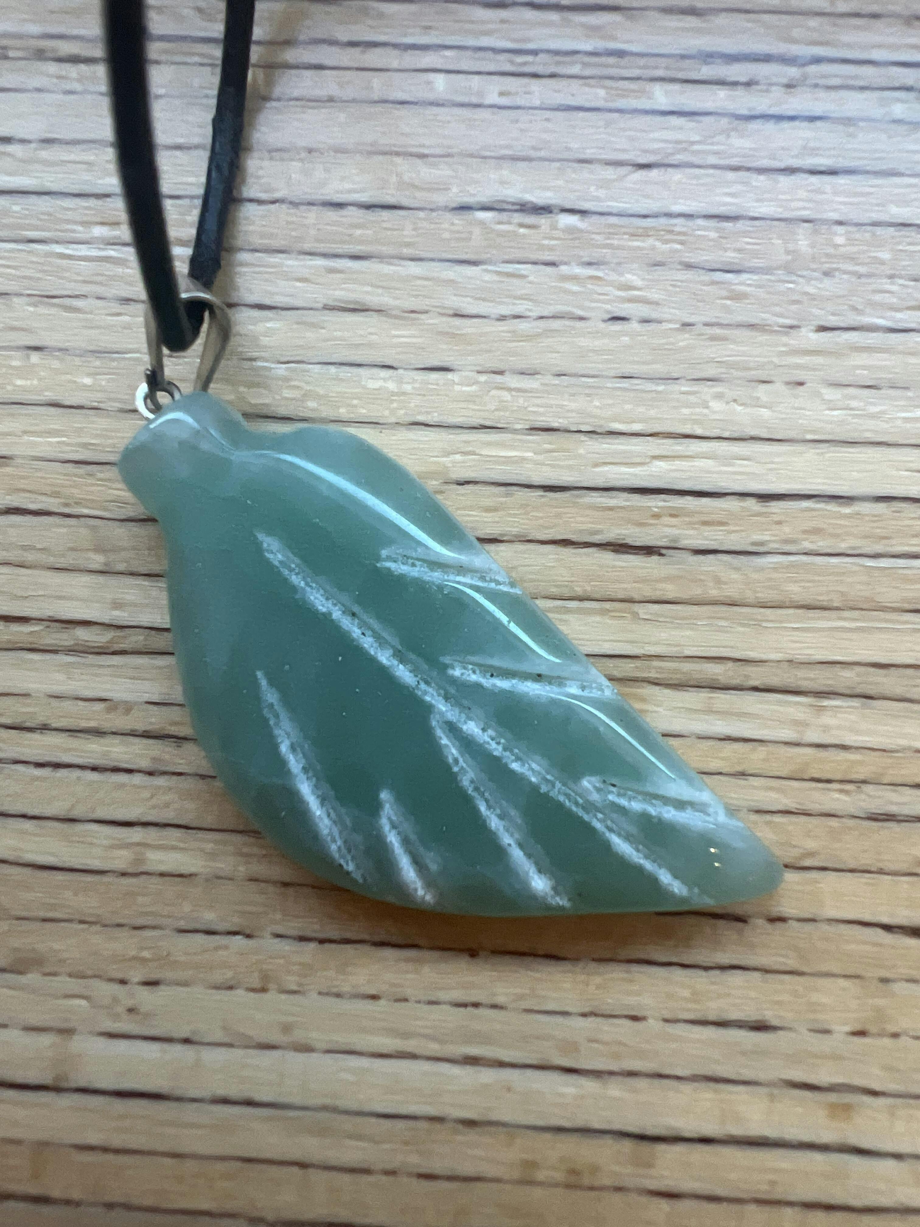 Aventurin Blatt Anhänger - mit Lederband