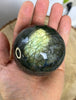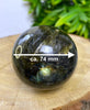 • Größe: Die Labradorit-Kugel hat einen Durchmesser von ca. 74 mm.