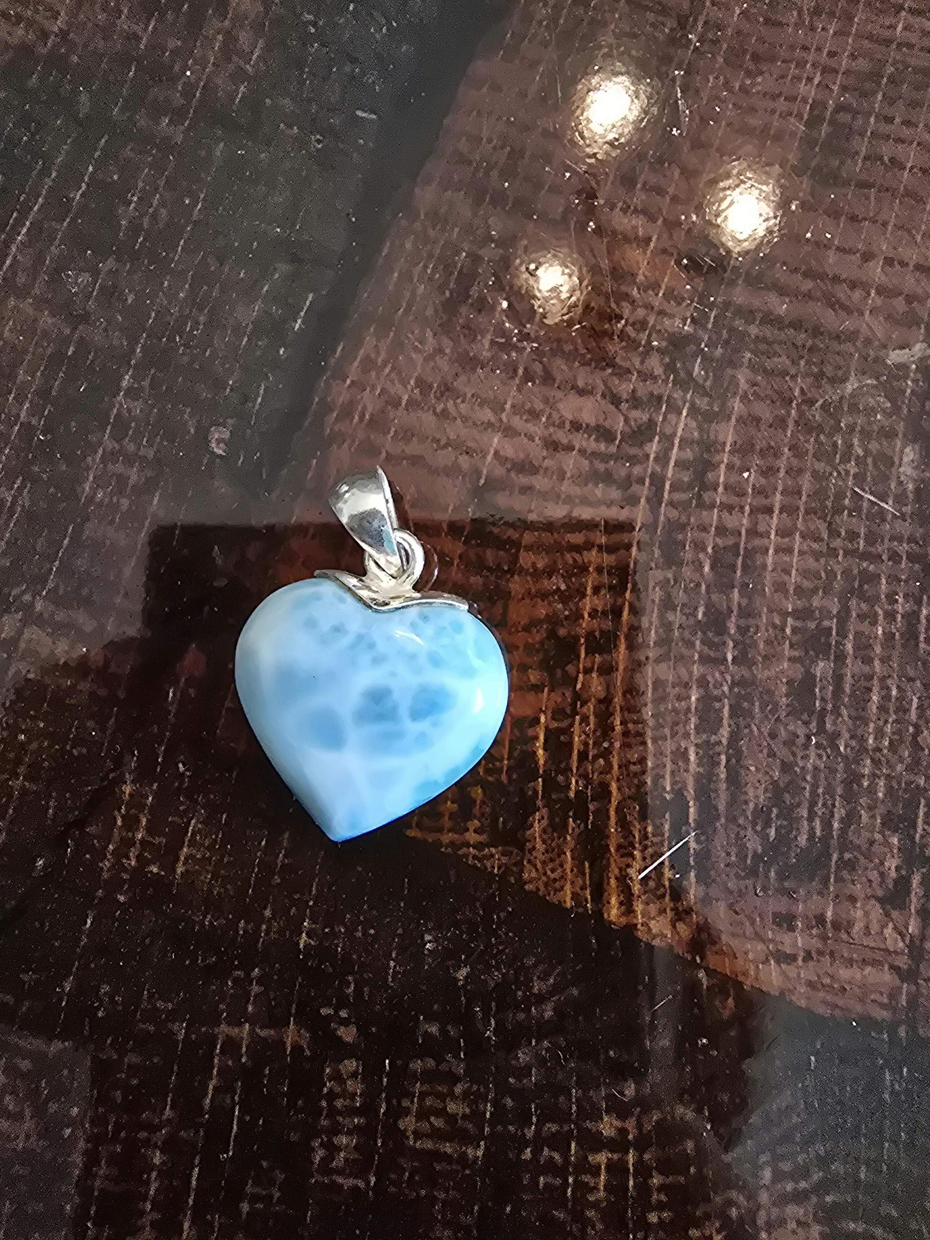 Der Larimar Herzanhänger ist wunderbar verarbeitet. Die Maserung kommt wunderbar zur Geltung.